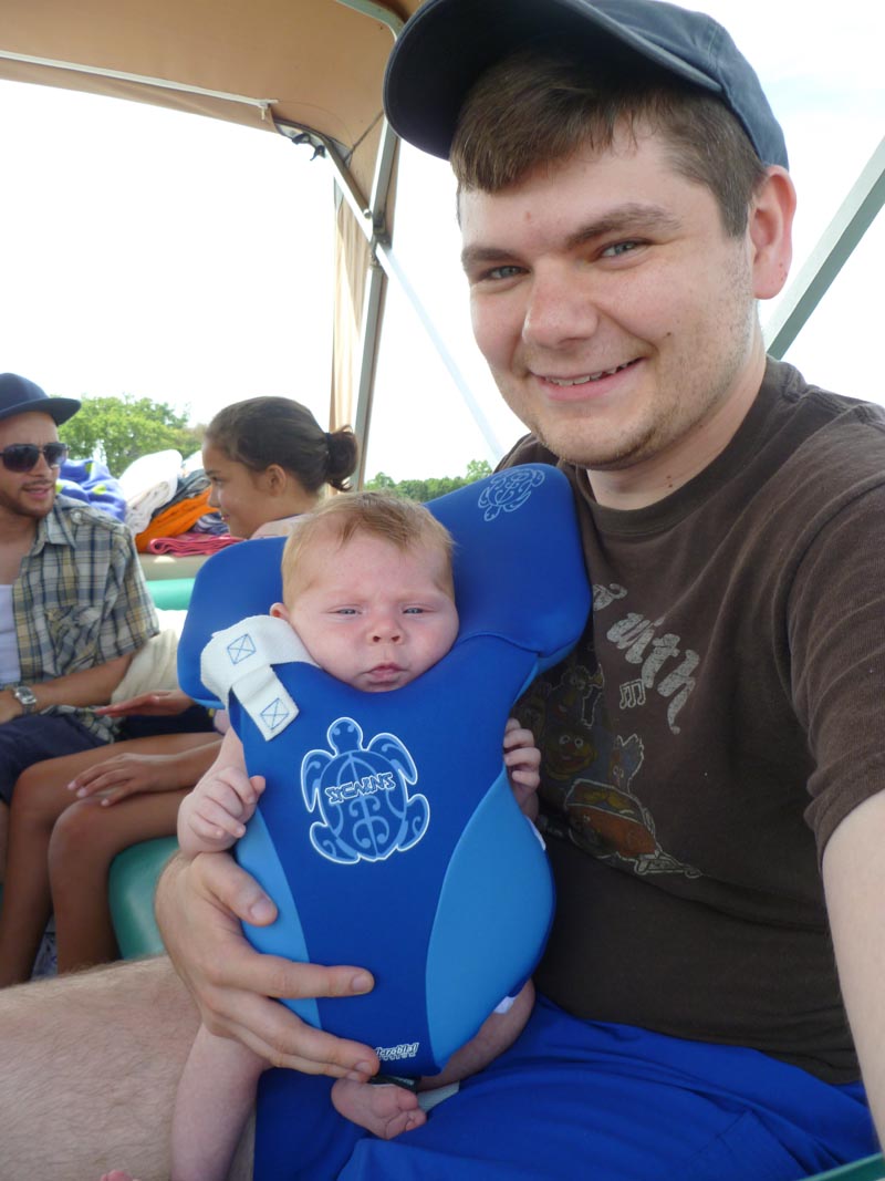 As you can see, it’s not necesarily the most obvious of products. When they opened the bag they had no idea what it was. Sure, they knew it was a life jacket, but the first thing my dad asked is if it was for the cat. I couldn’t believe that neither set of parents got our gags right away. We weren’t trying to be THAT clever. As I was smiling and saying a leading “Nooooo” my mom screamed “You’re having a baby?!” I’m not talking about just a polite yelp here, but a full-on scream. It was so loud that I was worried the neighbors would think we were taking lives instead of talking about new ones.