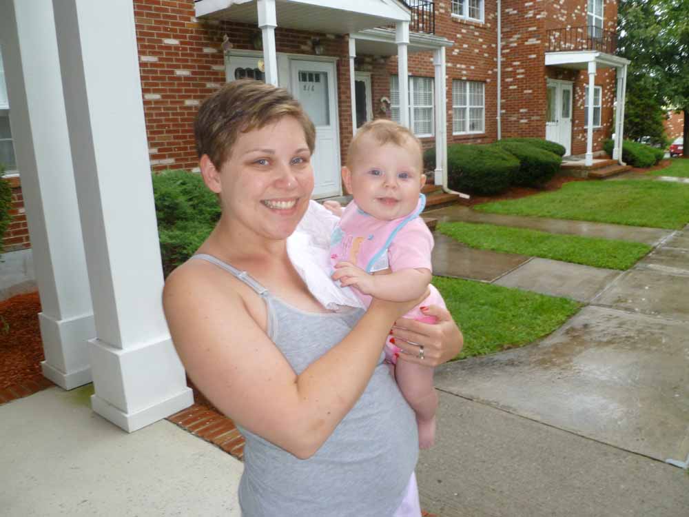 Saturday night it got a little scary. It had been pretty dark all day as you can see in this pre-storm pic that we mentally titled “Baby’s First Hurricane.” As the darkness increased, so did the wind and the rain. It was intermittent for a while there, but the rain was pretty intense. At this point, our main concerns were the aforementioned window smashes–though the wind didn’t seem to get that powerful–and the potential for flooding in our building’s storage area. My wife went to bed–we switched sides so that I was sleeping near the window while here and the baby were on the other side–but I stayed up. It wasn’t terrible, but you never know when that one tree branch might snap loose or that jerk behind me who refused to clear off his patio’s flower pot and I’ve got glass all over me.