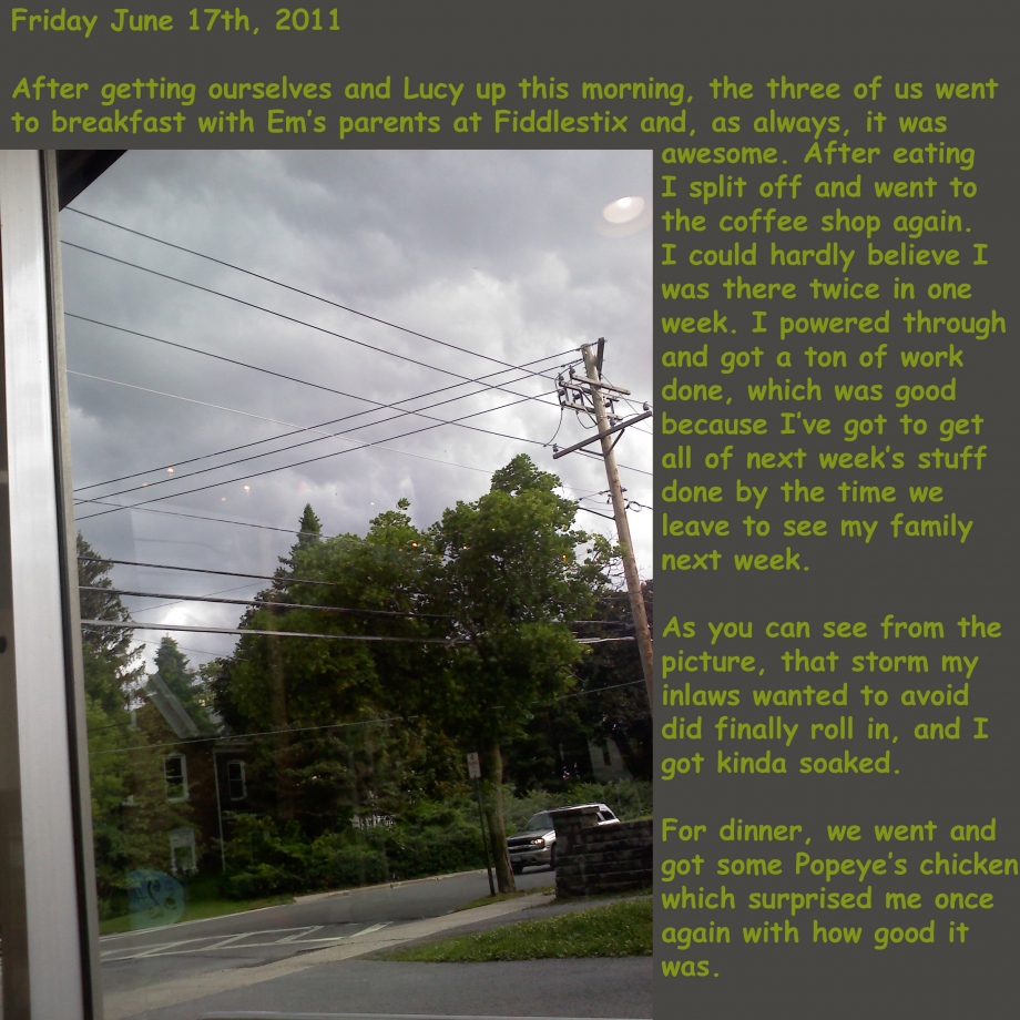 September 5, 2011June 27, 2012 TJDietsch Friday, June 17th, 2011 Share this: Click to email a link to a friend (Opens in new window) Email Click to share on X (Opens in new window) X Click to share on Facebook (Opens in new window) Facebook Click to share on Reddit (Opens in new window) Reddit Like Loading... Related