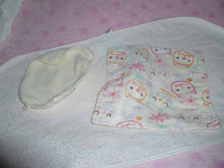 As you can see in the picture of the wipes on the changing table, we also have a package of cloth wipes that we either bought or someone gave us, can’t remember. If you look closely at the pic, you can see that the home made ones are holding up a lot better than the store bought ones and are also smaller by far. If you’re going cloth just to be green and to avoid chemicals, it’s pretty much a draw between making your own and buying cloth, but from the looks of it, the pre-made ones will wind up wearing out a lot sooner and therefore cost you more in the long run.