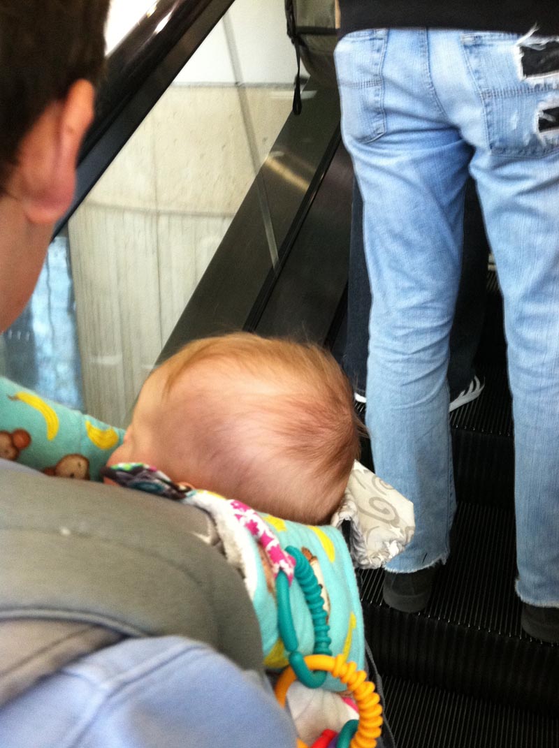 The trip started off with her first train ride, which she mostly slept through, even when we had to unexpectedly transfer trains. She then went on her first cab ride, which my wife did some research on because we weren’t sure about car seat laws in cabs. In New York City, it’s legal to be in a cab with your baby not in a car seat. Em still had Lucy in the carrier and kept her hand firmly on the strap. It helped that we didn’t wind up going more than 20 MPH at any time on our trip from Grand Central to the Javits center.