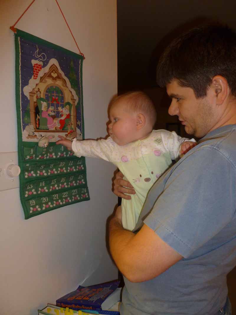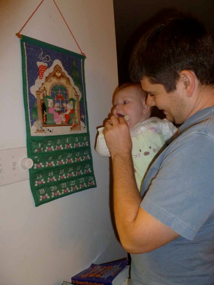 I could have sworn I’ve written about the Santa Mouse calendar before, but a quick search of the Chistmas Stories posts on my blog UnitedMonkee has come up with nothing. Ah well, no big deal, I’ll explain here. When I was a kid, I got this very simple, but very nice calendar counting down the days until Christmas. You move a tiny, semi-stuffed mouse from pocket to pocket until you finally reach Christmas Eve. I’ve had this thing so long, I don’t actually remember a December without it. I even brought it out for my very first Christmas in New York and had it hung in my room.