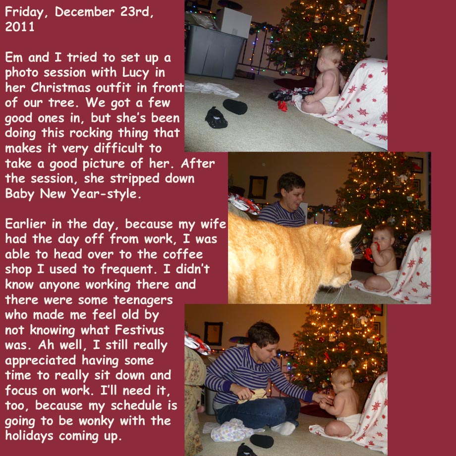 January 2, 2012June 27, 2012 TJDietsch Photo Diary: Friday, December 23rd, 2011 Share this: Click to email a link to a friend (Opens in new window) Email Click to share on X (Opens in new window) X Click to share on Facebook (Opens in new window) Facebook Click to share on Reddit (Opens in new window) Reddit Like Loading... Related