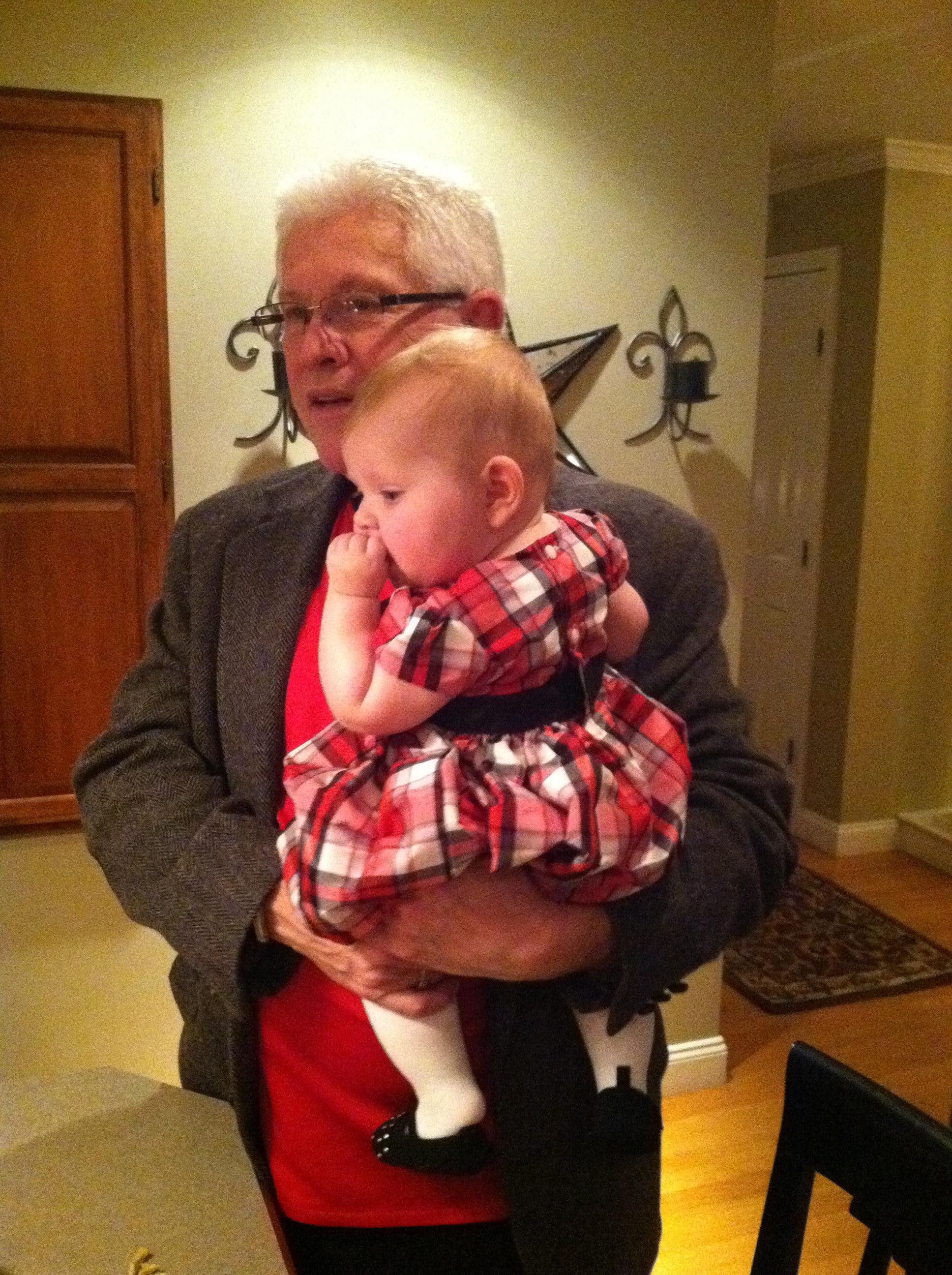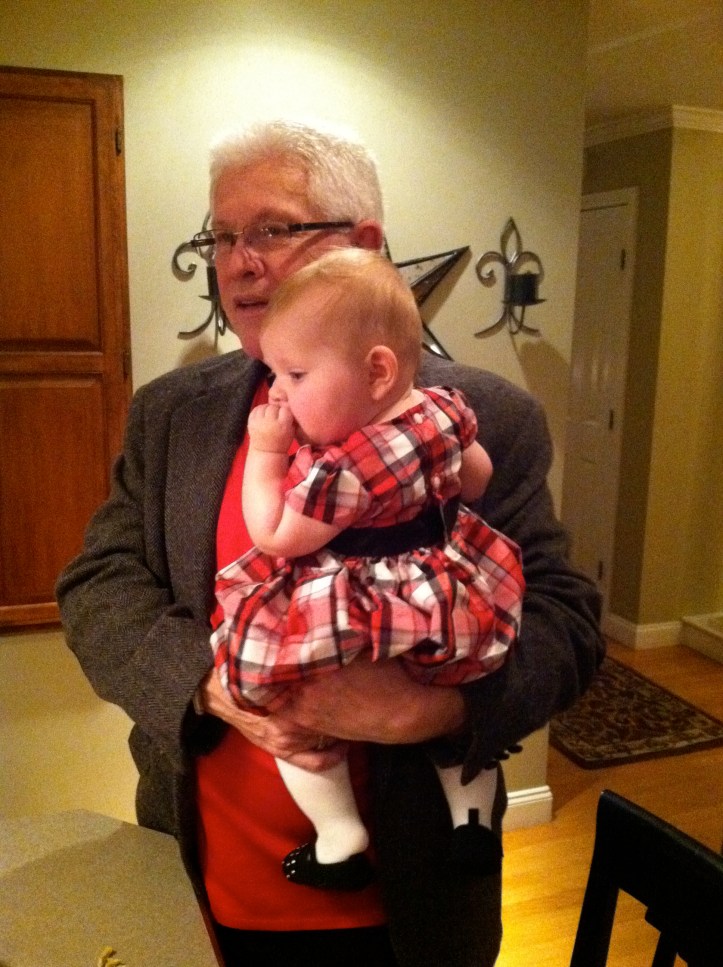 Our first Christmas involved just my wife, daughter and I getting up Christmas morning and opening presents at our place. My wife came up with the idea and I was completely into it because that’s how my parents and I usually did it when I was younger. Sometimes family members would join us, but we always had Christmas morning at our house. Anyway, we put Lucy down in front of the tree which, among other presents, included a giant stuffed giraffe that she immediately went for, grabbing it and practically pulling it all the way out from under the the tree. While she played with some of her new toys, Em and I also exchanged gifts and we had a wonderful time. We took things pretty easy that morning since we didn’t have to be anywhere until that evening, so we had some really awesome French toast for breakfast that she made.