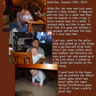 January 17, 2012June 27, 2012 TJDietsch Photo Diary: Saturday, January 14th, 2012 Share this: Click to email a link to a friend (Opens in new window) Email Click to share on X (Opens in new window) X Click to share on Facebook (Opens in new window) Facebook Click to share on Reddit (Opens in new window) Reddit Like Loading... Related