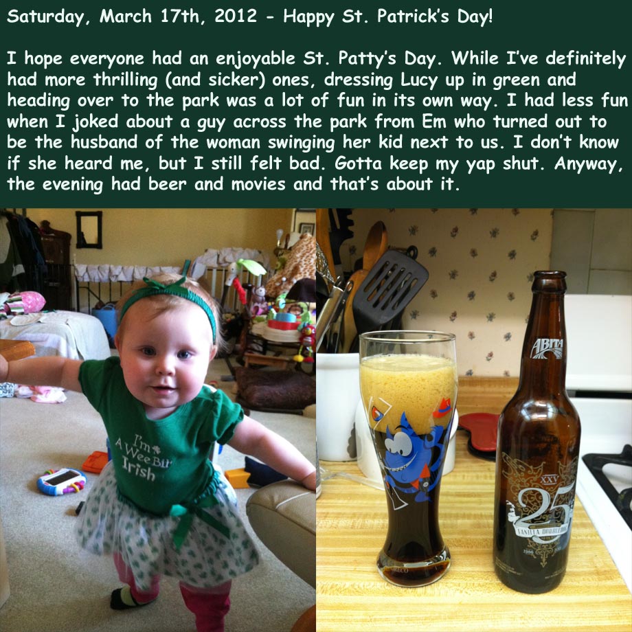March 18, 2012June 27, 2012 TJDietsch Photo Diary: Saturday, March 17th, 2012 Share this: Click to email a link to a friend (Opens in new window) Email Click to share on X (Opens in new window) X Click to share on Facebook (Opens in new window) Facebook Click to share on Reddit (Opens in new window) Reddit Like Loading... Related