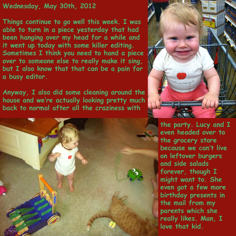 June 1, 2012June 27, 2012 TJDietsch Photo Diary: Wednesday, May 30th, 2012 Share this: Click to email a link to a friend (Opens in new window) Email Click to share on X (Opens in new window) X Click to share on Facebook (Opens in new window) Facebook Click to share on Reddit (Opens in new window) Reddit Like Loading... Related