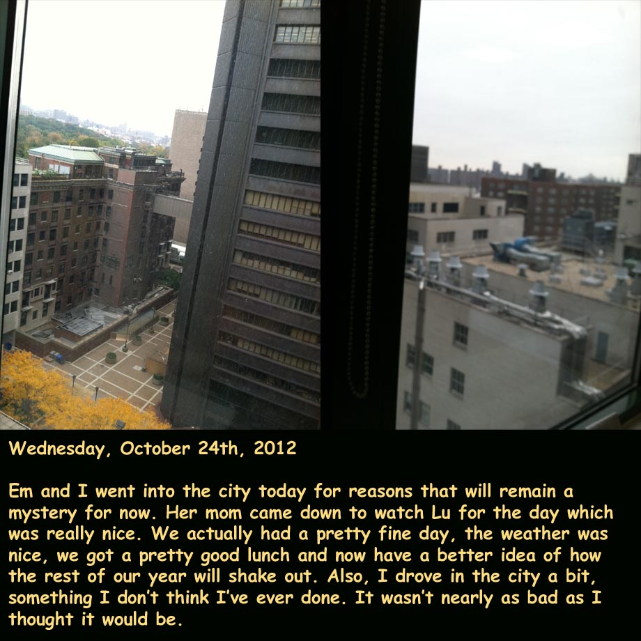 October 28, 2012 TJDietsch Photo Diary: Wednesday, October 24th, 2012 Share this: Click to email a link to a friend (Opens in new window) Email Click to share on X (Opens in new window) X Click to share on Facebook (Opens in new window) Facebook Click to share on Reddit (Opens in new window) Reddit Like Loading... Related