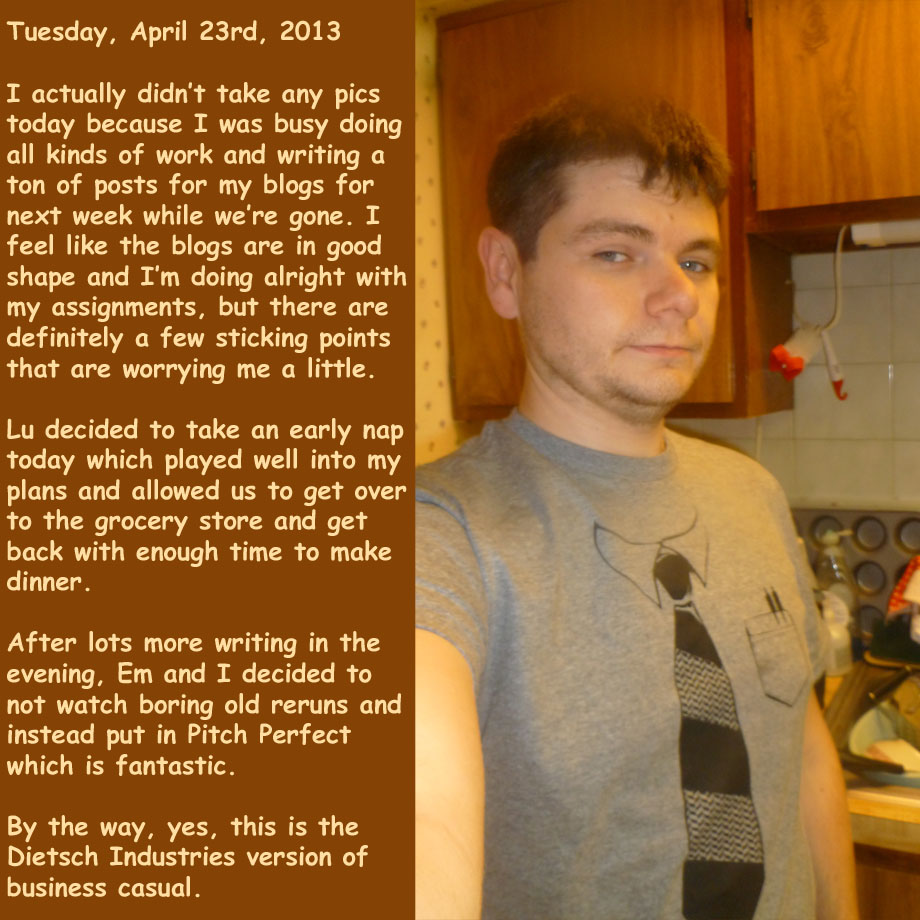 April 24, 2013 TJDietsch Photo Diary: Tuesday, April 23rd, 2013 Share this: Click to email a link to a friend (Opens in new window) Email Click to share on X (Opens in new window) X Click to share on Facebook (Opens in new window) Facebook Click to share on Reddit (Opens in new window) Reddit Like Loading... Related