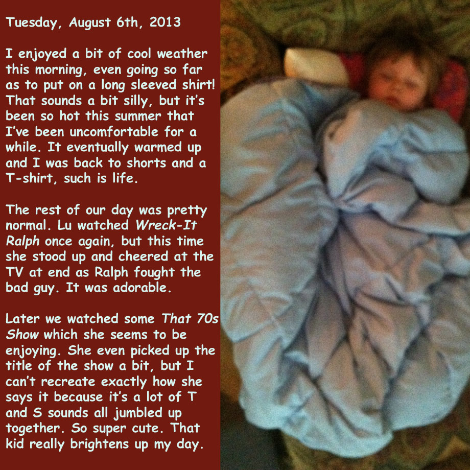 August 26, 2013 TJDietsch Photo Diary: Tuesday, August 6th, 2013 Share this: Click to email a link to a friend (Opens in new window) Email Click to share on X (Opens in new window) X Click to share on Facebook (Opens in new window) Facebook Click to share on Reddit (Opens in new window) Reddit Like Loading... Related