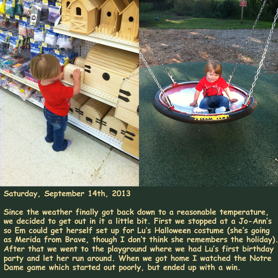 September 23, 2013 TJDietsch Photo Diary: Saturday, September 14th, 2013 Share this: Click to email a link to a friend (Opens in new window) Email Click to share on X (Opens in new window) X Click to share on Facebook (Opens in new window) Facebook Click to share on Reddit (Opens in new window) Reddit Like Loading... Related