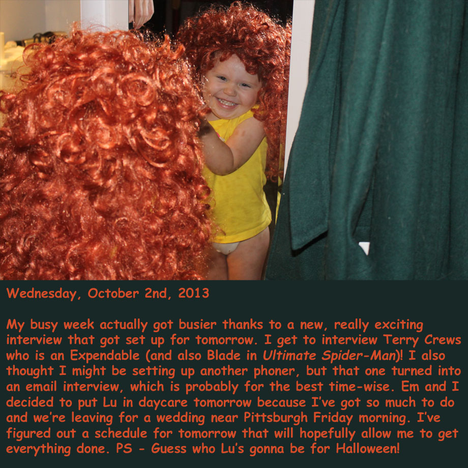 Lu tried on the wig one time before Halloween, it can be seen in the October 2nd, 2013 Photo Diary.