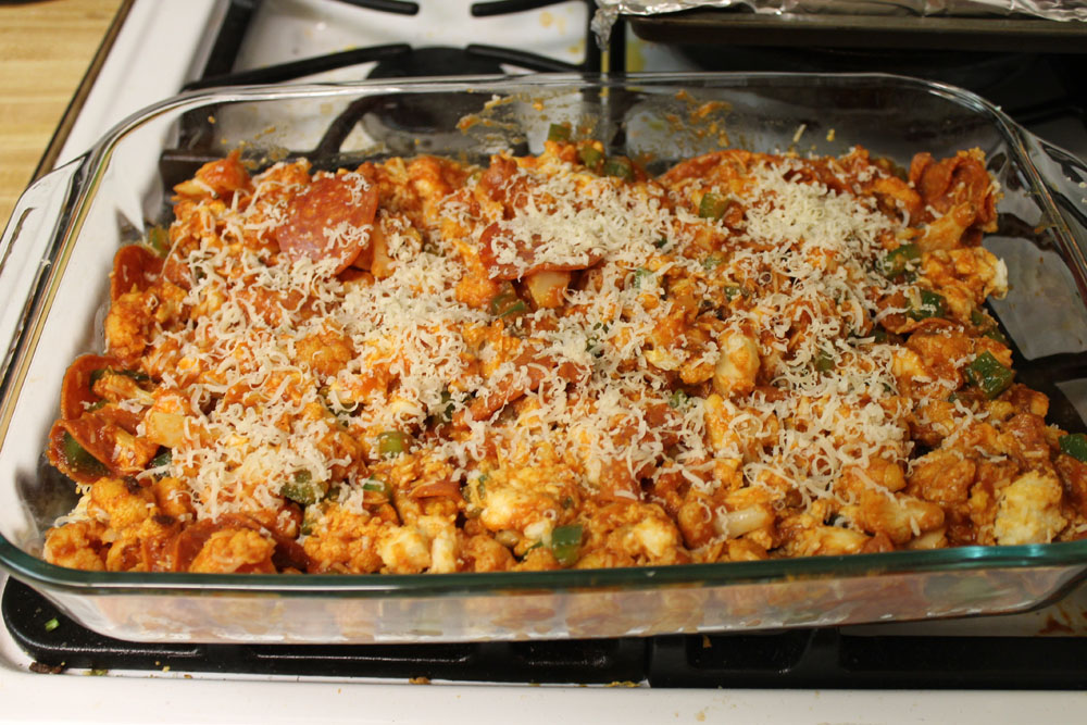 I’ve had this particular recipe saved in my Pocket for quite a while and finally gave it a shot last week. There’s a version on the site that uses pasta instead of cauliflower, but I was trying to go for a healthier version. The only ingredient change I made came about because I forgot to buy black olives, but otherwise, I put this together pretty much by the book and thought it was a great little dish that combined the greatness of cheese and pepperoni with cauliflower, which I assume is healthy. Plus, it’s super easy to put together. Next time I’d like to make it with homemade sauce and maybe a better pepperoni to see if that makes it even better.