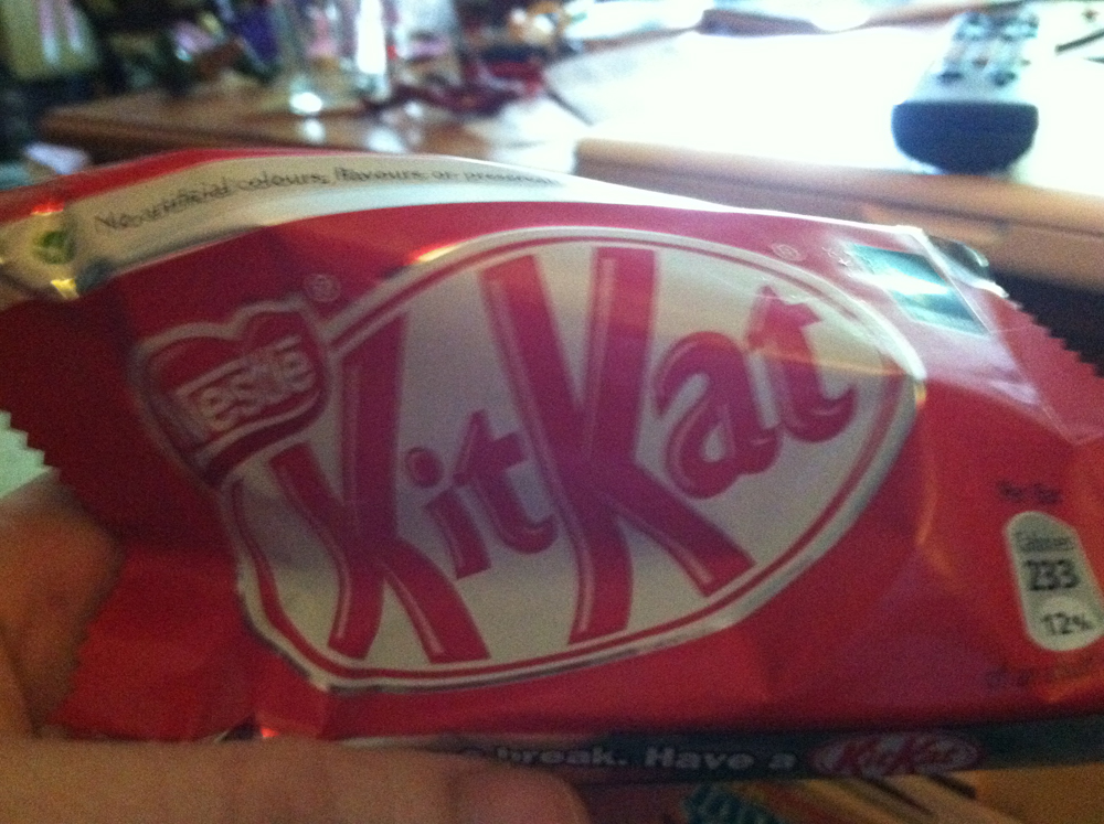 A few weeks back my folks went to Ireland. When they came back they brought us some surprises, including a Kit Kat for my wife and I and a bottle of amazing Jameson’s Irish Whiskey for me. I don’t have the proper vocabulary to describe how good the booze is, but I can say that the Irish Kit Kat, which is actually made with Fairtrade cocoa, was SO much better than the ones you get in the states. I’m no Fairtrade warrior, but there’s no denying the difference in taste and quality here. The wrapper reports that there’s 66% milk chocolate in this bar while I have no idea what’s in the Stateside stuff. I do know that the US bars tend to have a chemically aftertaste that is completely absent when dealing with this better, richer, more flavorful chocolate.