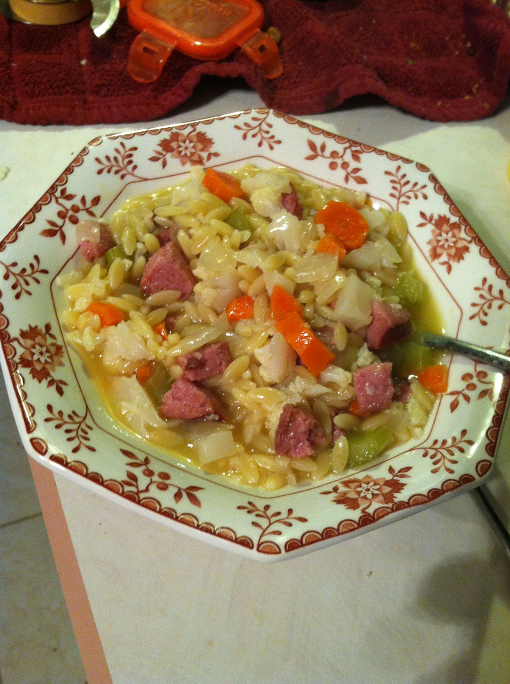 I intended to make a rib-based sauce in the crock pot on Sunday, but had a bit of a problem with the device (operator error was to blame, thankfully and unfortunately). So, with that out the window — almost literally because I was so mad — I had to improvise a kielbasa soup that turned out surprisingly well. In fact, it was so good, I’m going to give it its own post later this week, so stay tuned!