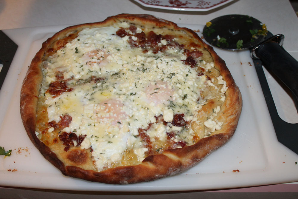For the first one, I followed the recipe, but for the second I mixed it up just a little bit by adding some shredded cheddar and about a quarter of a cup of feta plus some dried up thyme that I had in the fridge. The extra cheese was nice, but I thought the thyme added a really nice extra element that added a nice additional flavor to the proceedings.