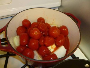 6-Plum tomatoes, butter and onions